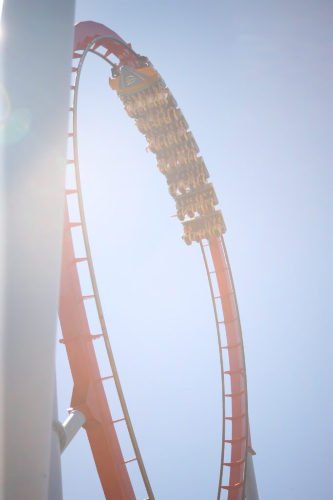 Con esta situación ya no puedes calcular el tiempo que te falta en la cola normal para poder pasar. Si crees que van a ser 20 minutos no es cierto, porque hay tanta gente en las otras dos colas que se pueden lanzar varios trenes sólo con quienes esperan en el Pase Express o sólo quienes esperan en la de Singles. Añado un detalle que considero conveniente comentar respecto a Shambhala: me tocó en la última fila y debo decir que en contra de la mala fama que tiene no sentarse en la primera, la última se siente de una intensidad asombrosa. Las fuerzas G te atrapan y diríase que te cuesta subir los brazos si quieres alzarlos al aire, como casi todo el mundo hace para disfrutar a tope de las montañas rusas. También lo comentamos para que lo tengáis en cuenta, que la última fila se siente asombrosa. Recomendamos que la probéis en algún momento si la podéis elegir.