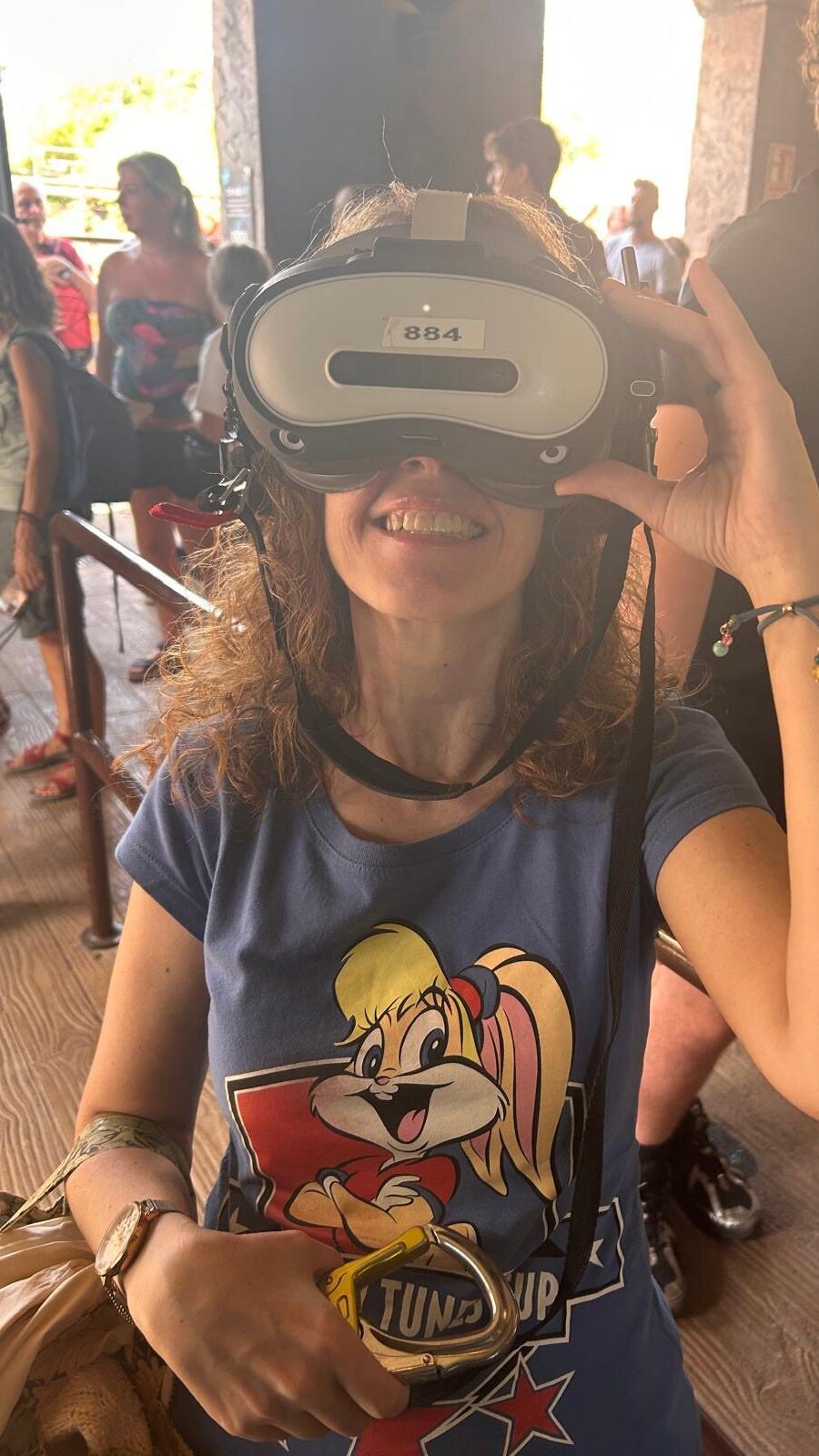 Y es una pasada. Ya el año pasado probamos esta misma tecnología en Hysteria in Boothill, una especie de pasaje del terror situado en el Lejano Oeste, o Far West, como pone tallado en sus piedras a la entrada del área, que nos gustó mucho y que sigue estando disponible para los visitantes, por cierto. También de pago, por 7 euros por persona. Y la verdad es que lo valía entonces y lo sigue valiendo ahora. Porque es una gozada hacer la montaña rusa con tanta compañía visual como tienes con las gafas. Vas viendo a lo largo del recorrido distintos animales, y oyendo los sonidos de la naturaleza que va apareciendo. Una serpiente enorme, gigantesca, por ejemplo. A cada tramo de la vía se te va abriendo un nuevo portal que te dará paso a un animal o a un personaje. Es una pasada, de verdad.