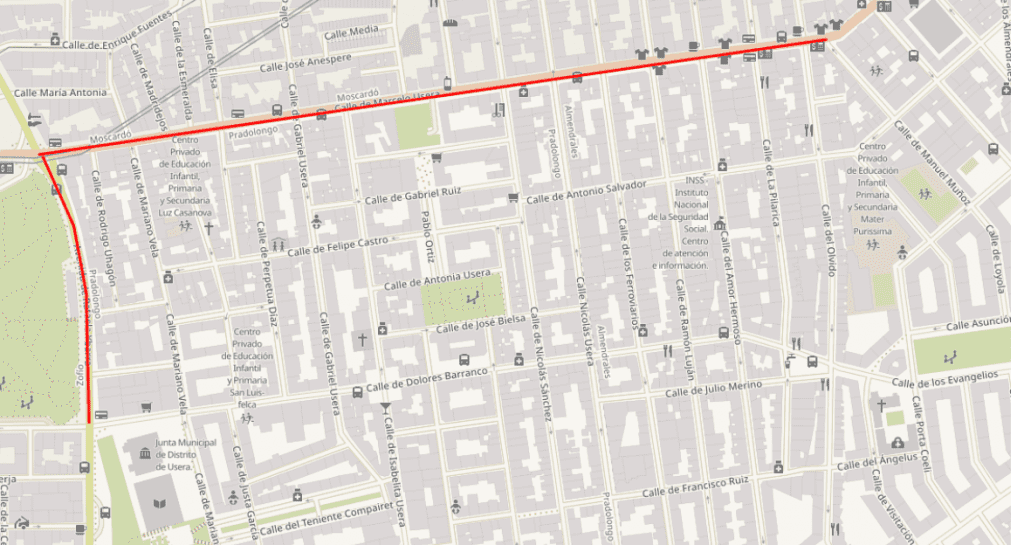 Recorrido: c/ Marcelo Usera esquina c/ Manuel Muñoz hasta Av. Rafaela Ybarra con la c/ Elisa Ochoa