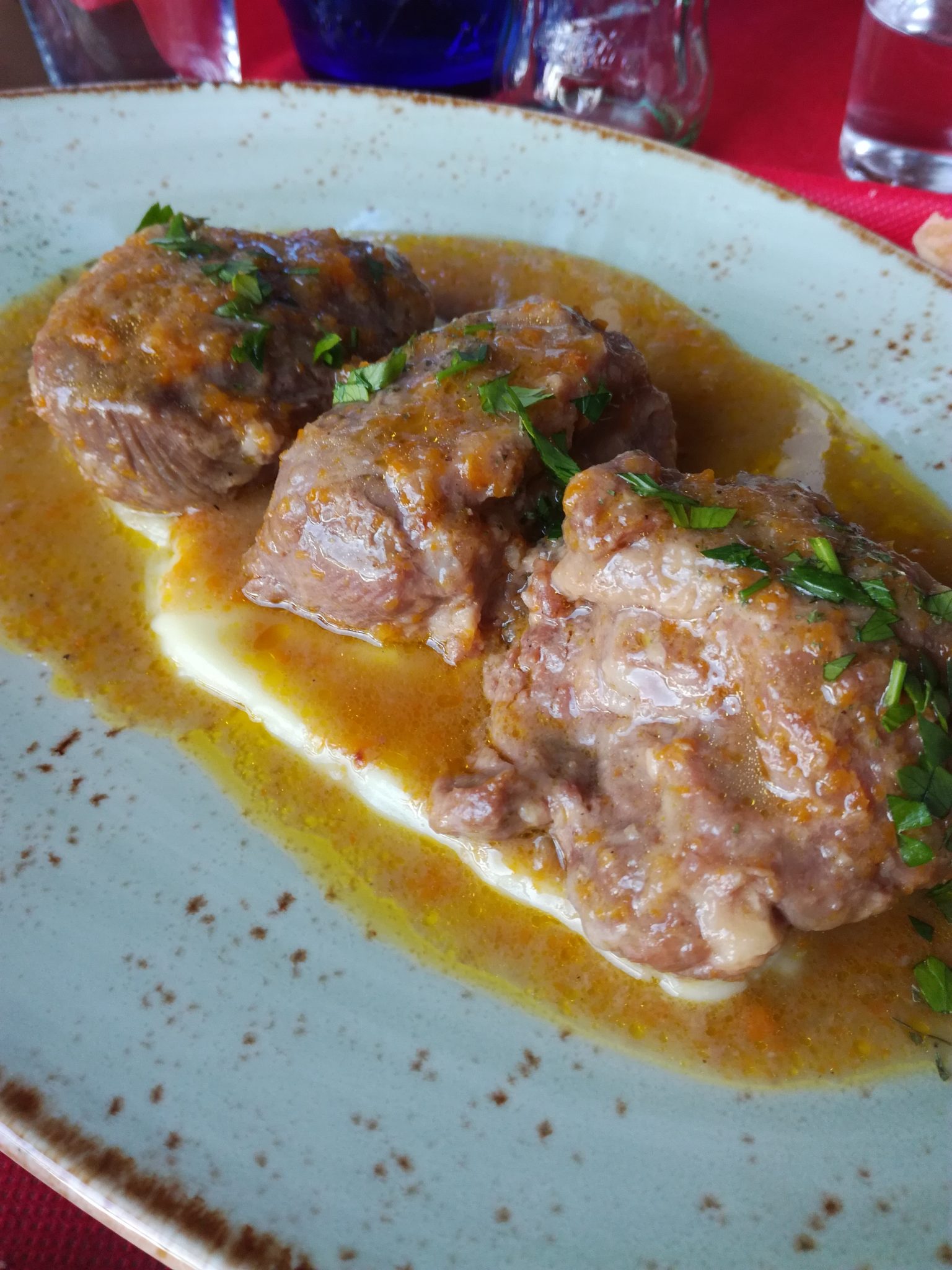 Las carrilleras, con un sabor fuerte, pero tan blandas que casi se deshacían en la boca, y una salsa que mantenía la carne jugosa, y en la que hubiéramos mojado dos barras de pan de haber podido, porque lo merecía.
