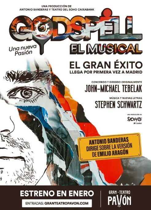 Se presenta por fin en Madrid el aclamado musical GODSPELL, un clásico de Broadway que cobra vida en español gracias al empeño de Antonio Banderas, que es quien dirige a un elenco de jóvenes talentosos, y al libreto actualizado por Emilio Aragón.