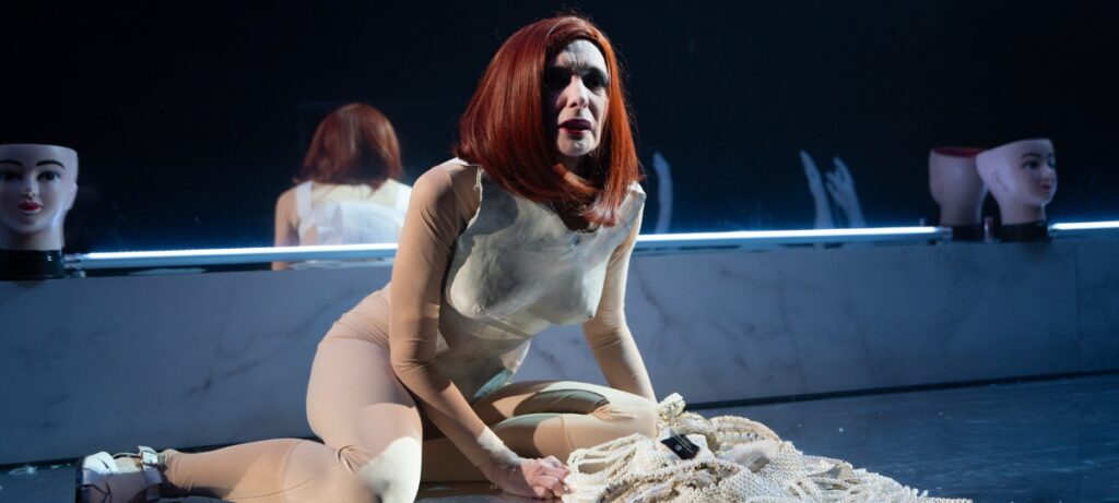 Las amargas lágrimas de Petra Von Kant en la versión que estrena ahora el teatro Bellas Artes es una producción exquisita que no deja de lado el atrevimiento en lo que a decisiones escénicas se refiere. Es una obra muy punk, muy salvaje, muy vanguardista, con una concepción del decorado, vestuario o banda sonora cantada en directo absolutamente desconcertante pero no por ello menos arrebatadora.