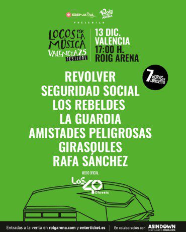 El próximo 13 de diciembre, el Roig Arena acoge uno de los mayores festivales de pop y rock español de los 80 y 90. Una cita imprescindible con más de 7 horas de música en directo, himnos inolvidables y artistas legendarios: Revolver, Seguridad Social, Los Rebeldes, La Guardia, Amistades Peligrosas, Girasoules y Rafa Sánchez.