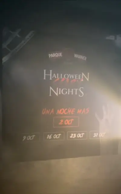 Con esta actividad, Parque Warner quería comunicarnos otra de las novedades 2026, porque en uno de los muros del pasaje habían colocado un cartel para anunciar que en las Halloween Scary Nights añadirían una noche más. El 2 de octubre los visitantes podrán asistir por la noche a la primera de ellas. Y es que todas acaban estando tan llenas que el público había pedido otra para que pudieran entrar más personas. Deseo concedido para ellas.