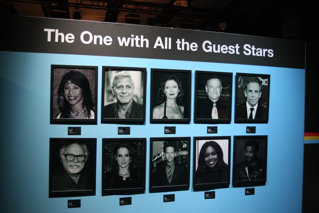 Un detalle que está muy bien de The Friends Experience es que cada vitrina contiene el dato de en qué capítulo de qué temporada se usó su contenido. En la pared en la que se expone el panel de los invitados especiales cada actor tiene su foto -actual, no del momento en que rodaron su intervención- y su placa con la identificación de en qué capítulo apareció, cosa muy práctica a la hora de localizarlos. Lo que no encontramos, y estaría bien que se incluyera, es una foto del momento en que el famoso hacía su aparición estelar. Eso ayudaría mucho más a recordarlo.